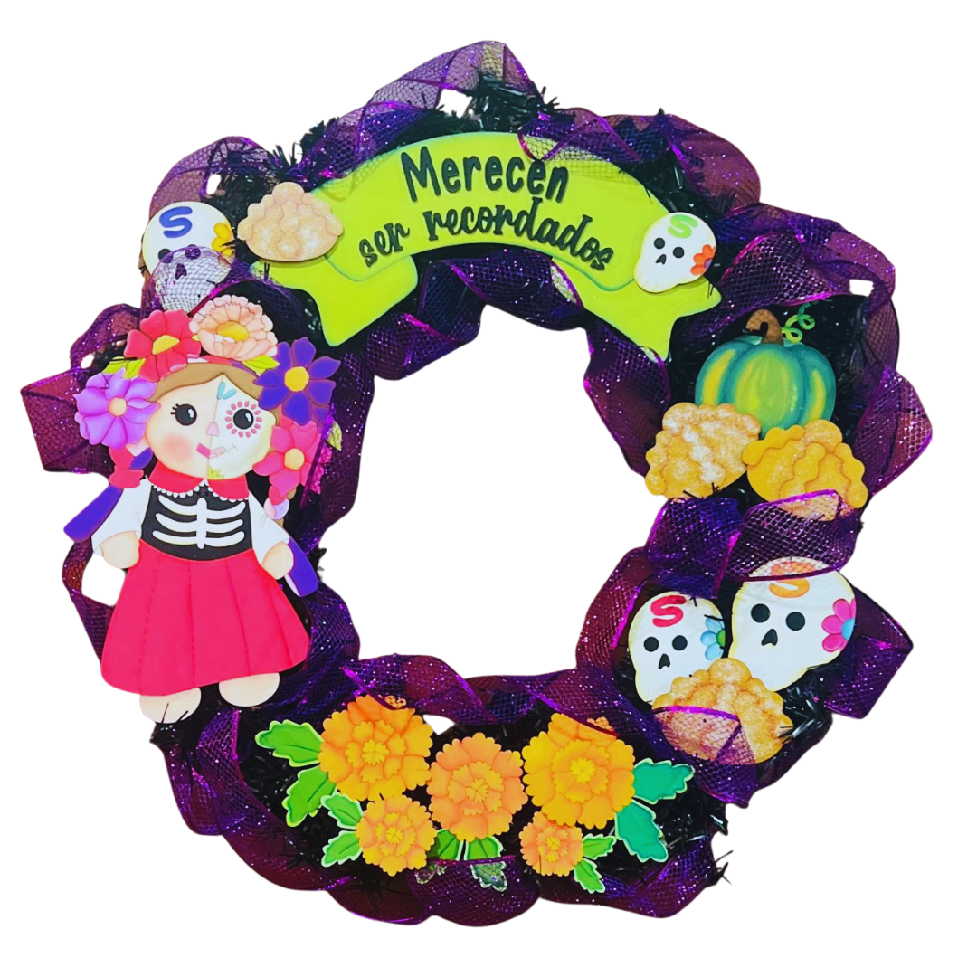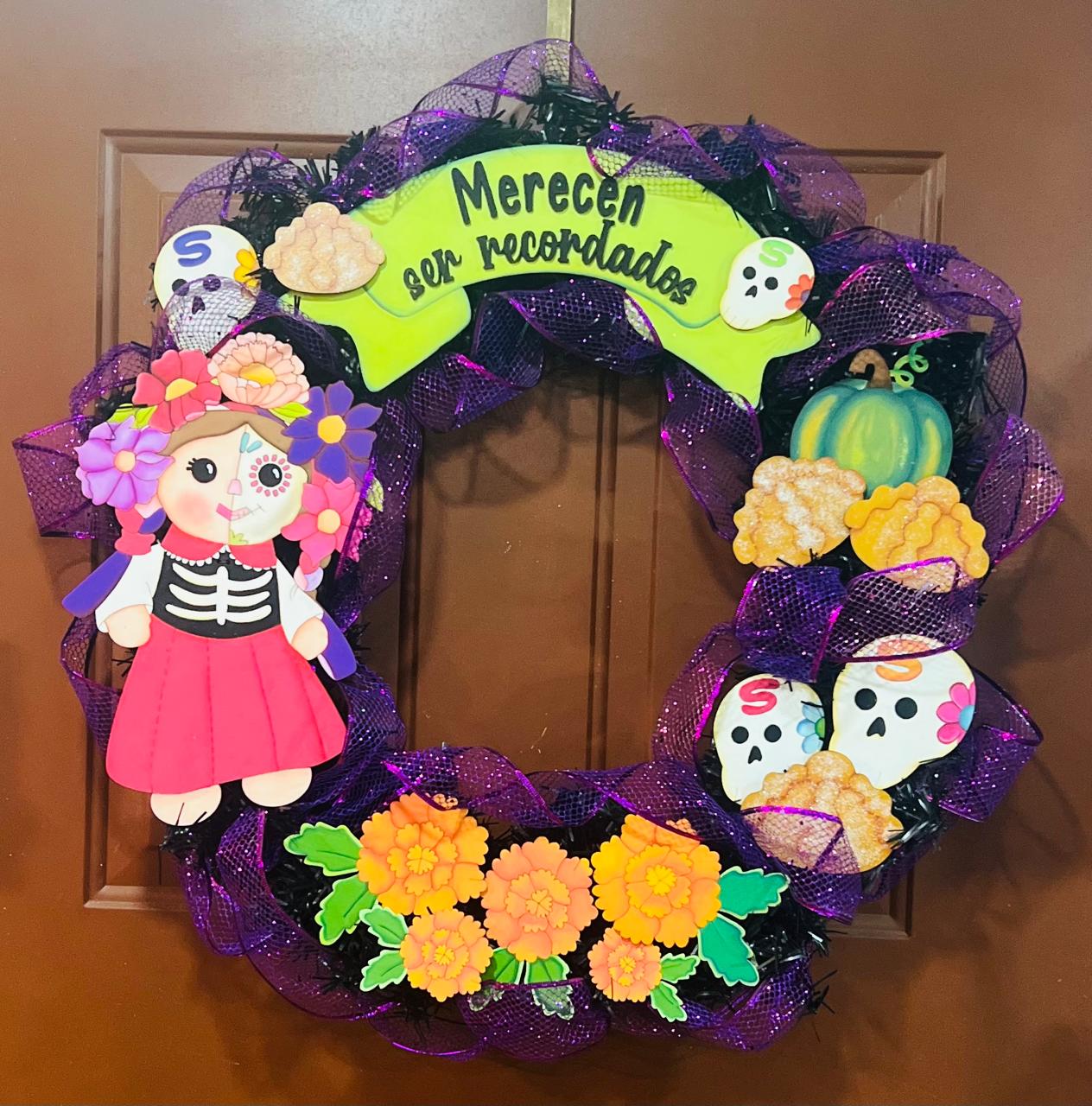 Corona artesanal inspirada en la tradición del Día de Muertos